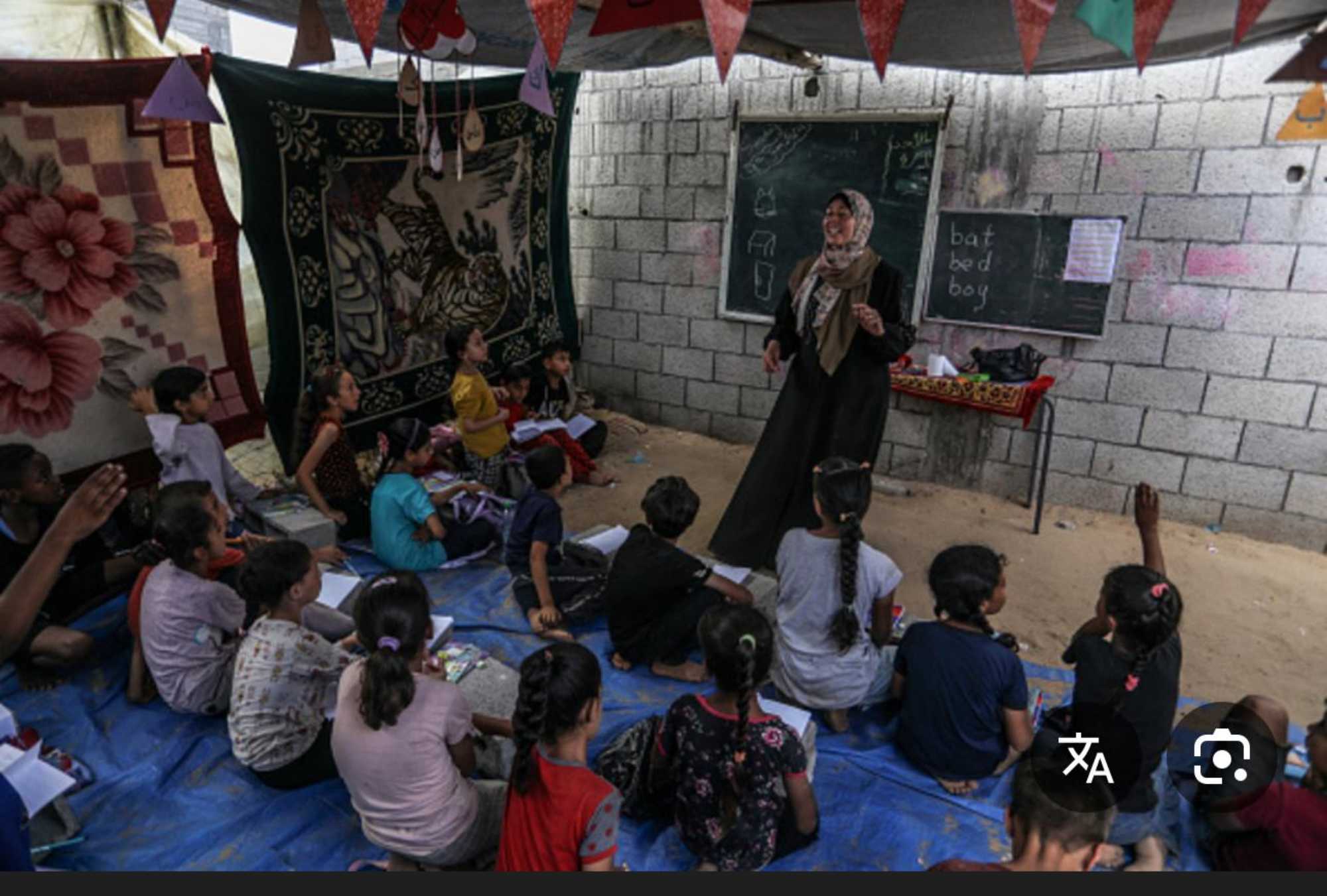 Malgré la douleur et la perte, les enfants continuent de chercher à apprendre, assis entre les ruines et les camps.