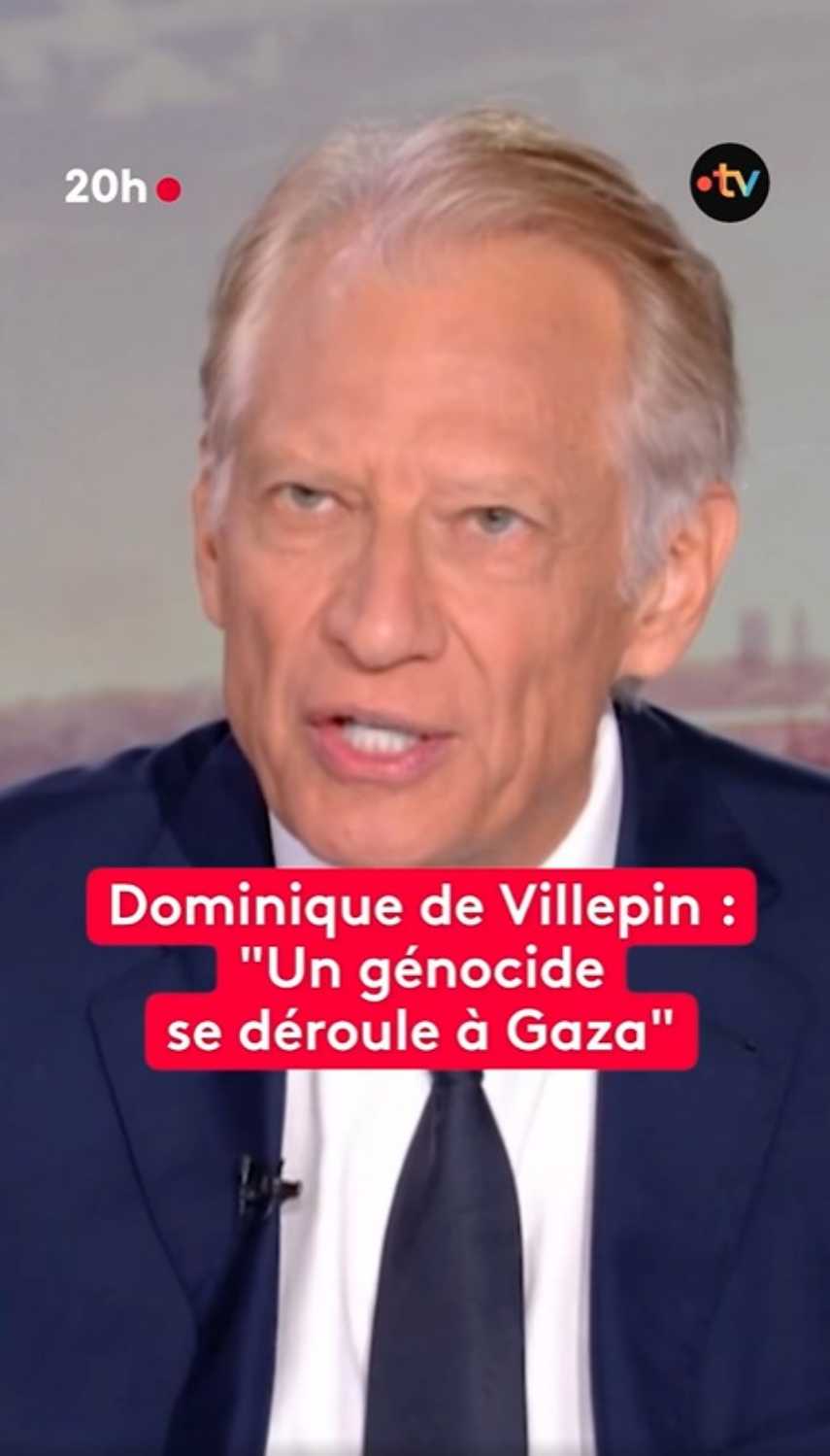 ""La communauté internationale est là pour rappeler Benyamin Netanyahou à sa responsabilité à un moment où un génocide se déroule à Gaza" déclare Dominique de Villepin à l'occasion de la reconnaissance d'un Etat palestinien par la France"".